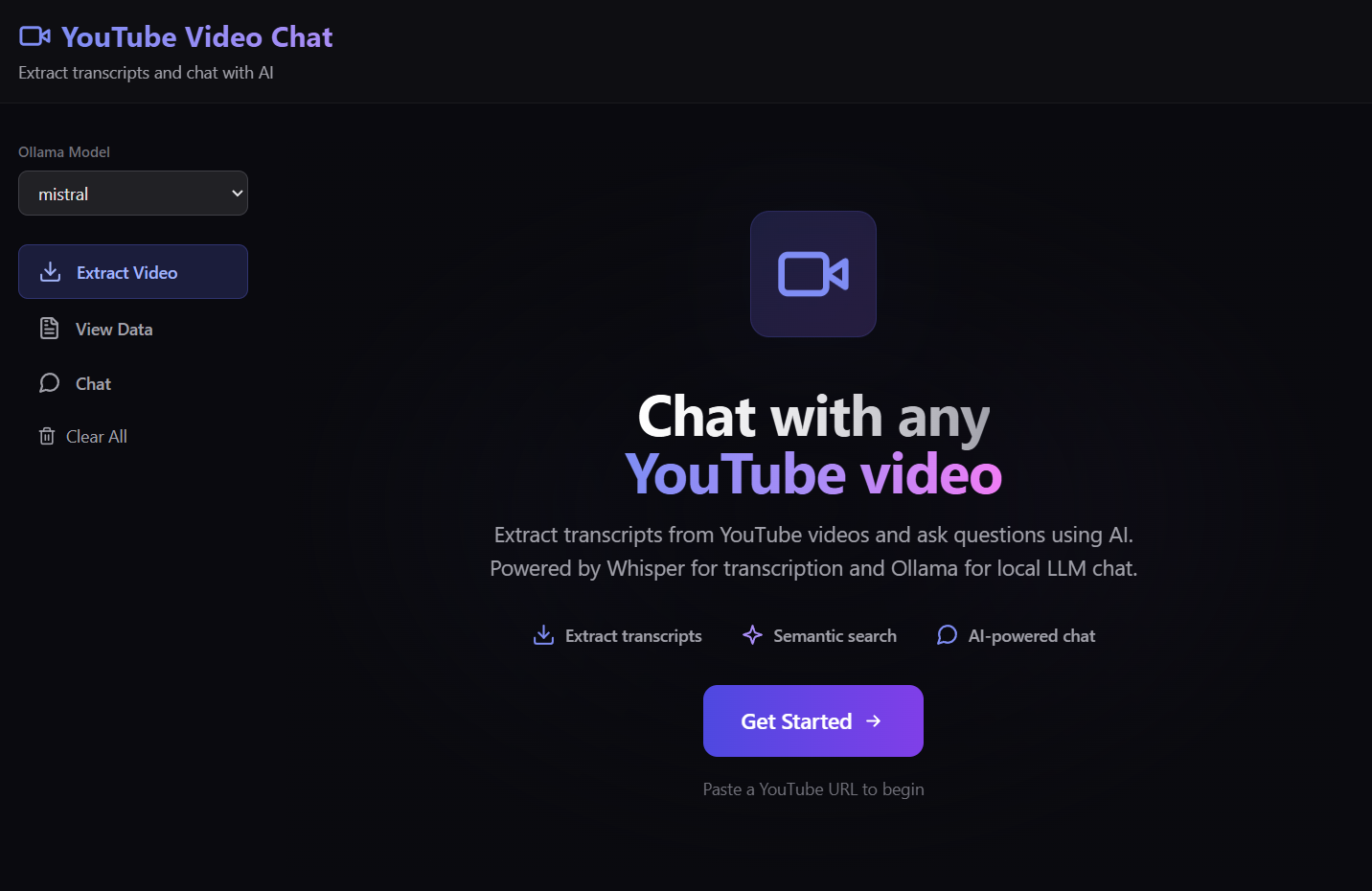 A Python application that extracts the complete script (transcript), title, and description from YouTube videos, and provides an AI-powered chatbot to ask questions about video content using local LLM (Ollama). Uses semantic search for intelligent chunk retrieval and supports multiple transcription methods with automatic fallback.